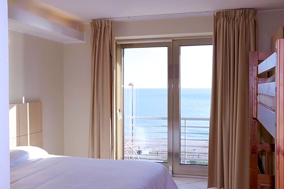 This air-conditioned family room is consisted of of a flat-screen TV with satellite channels, a private bathroom as well as a balcony with sea views. The unit has 3 beds.
